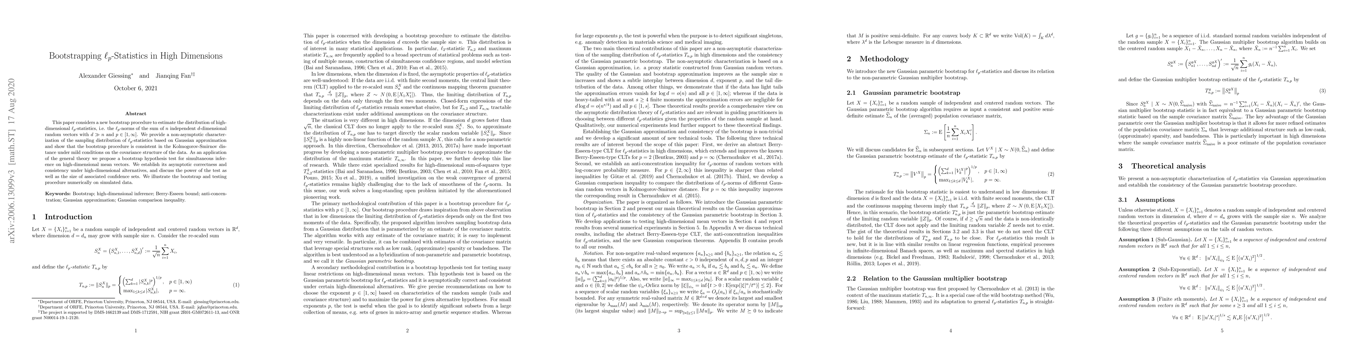 The paper presents a novel bootstrap procedure and a Gaussian comparison theory for high-dimensional \ell_p-statistics, along with a consistent bootstrap test for high-dimensional mean vectors.
