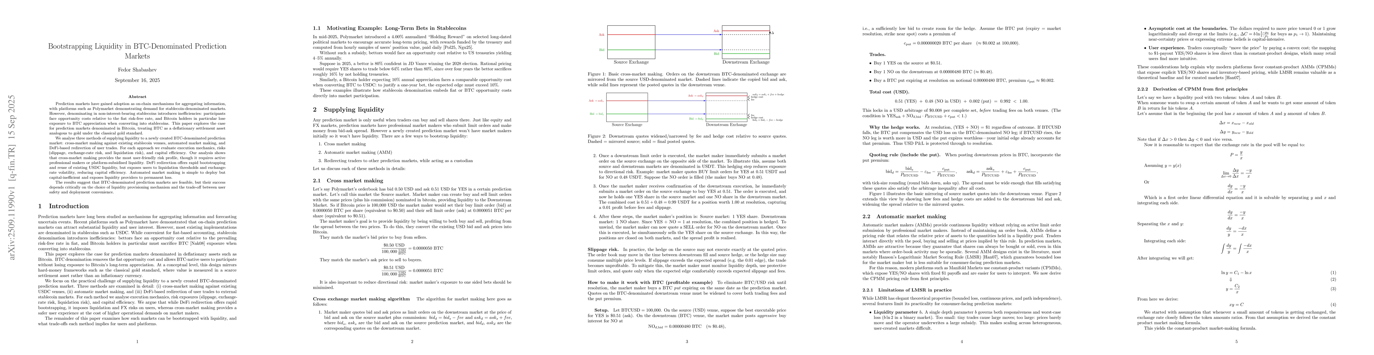 This research provides critical insights into building BTC-denominated prediction markets, which could enhance information aggregation while avoiding stablecoin-related inefficiencies. It highlights the trade-offs between user safety, deployment speed, and capital efficiency in different liquidity models.