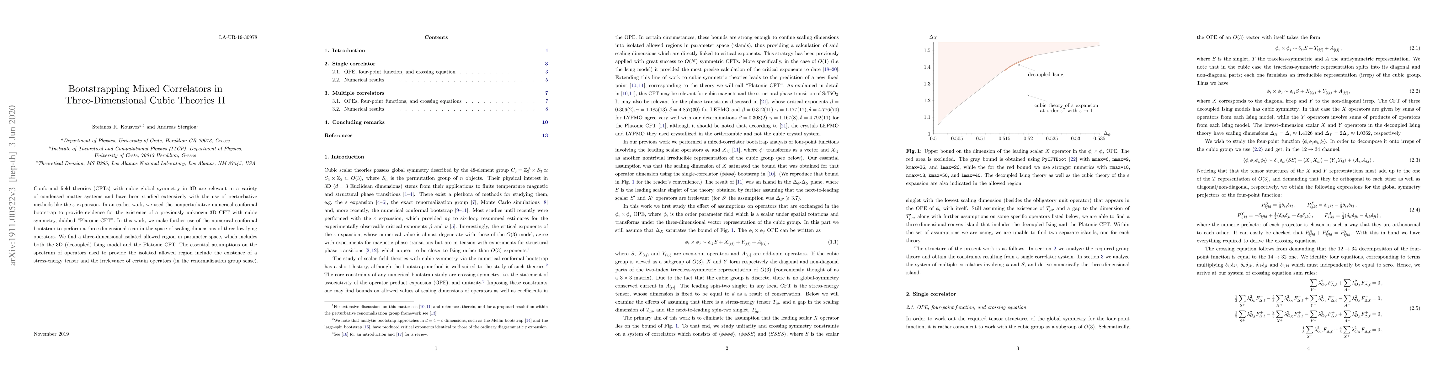 Conformal field theories (CFTs) with cubic global symmetry in 3D are relevant in a variety of condensed matter systems and have been studied extensively with the use of perturbative methods like the $\varepsilon$ expansion. In an earlier work, we used the nonperturbative numerical conformal bootstrap to provide evidence for the existence of a previously unknown 3D CFT with cubic symmetry, dubbed "Platonic CFT". In this work, we make further use of the numerical conformal bootstrap to perform a three-dimensional scan in the space of scaling dimensions of three low-lying operators. We find a three-dimensional isolated allowed region in parameter space, which includes both the 3D (decoupled) Ising model and the Platonic CFT. The essential assumptions on the spectrum of operators used to provide the isolated allowed region include the existence of a stress-energy tensor and the irrelevance of certain operators (in the renormalization group sense).