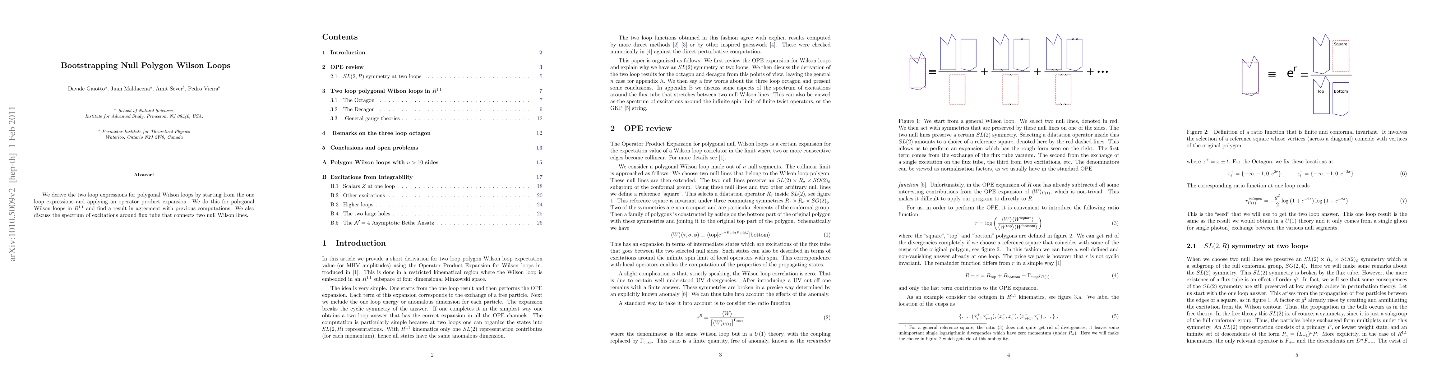 Two-line summary: This paper derives the two-loop expressions for polygonal Wilson loops in R^{1,1} by bootstrapping from one-loop expressions using an operator product expansion, confirming previous results. It also explores the excitation spectrum around the flux tube connecting two null Wilson lines.