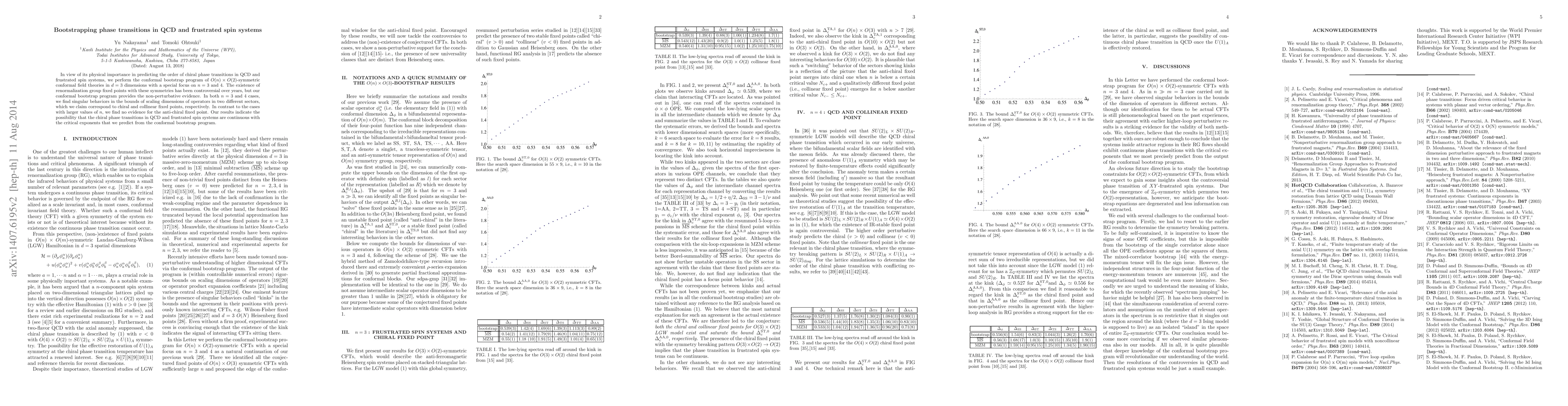 This paper uses conformal bootstrap to investigate $O(n)\times O(2)$-symmetric conformal field theories in 3D, focusing on $n=3$ and $4$. The study provides non-perturbative evidence for the existence of renormalization group fixed points, revealing singular behaviors corresponding to chiral and collinear fixed points, and suggesting continuous chiral phase transitions in QCD and frustrated spin systems.