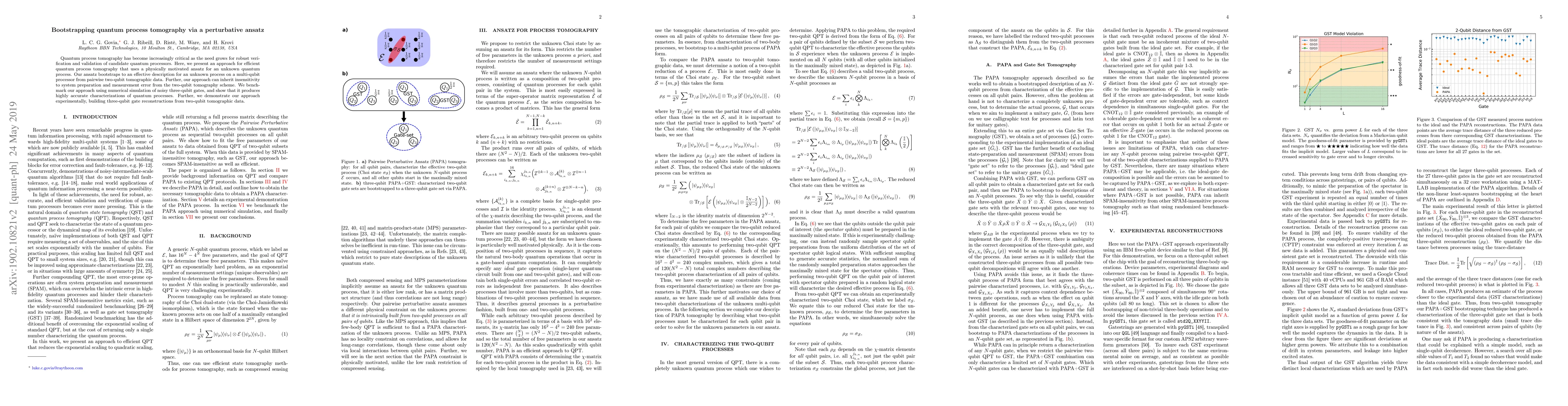 Quantum process tomography has become increasingly critical as the need grows for robust verification and validation of candidate quantum processors. Here, we present an approach for efficient quantum process tomography that uses a physically motivated ansatz for an unknown quantum process. Our ansatz bootstraps to an effective description for an unknown process on a multi-qubit processor from pairwise two-qubit tomographic data. Further, our approach can inherit insensitivity to system preparation and measurement error from the two-qubit tomography scheme. We benchmark our approach using numerical simulation of noisy three-qubit gates, and show that it produces highly accurate characterizations of quantum processes. Further, we demonstrate our approach experimentally, building three-qubit gate reconstructions from two-qubit tomographic data.