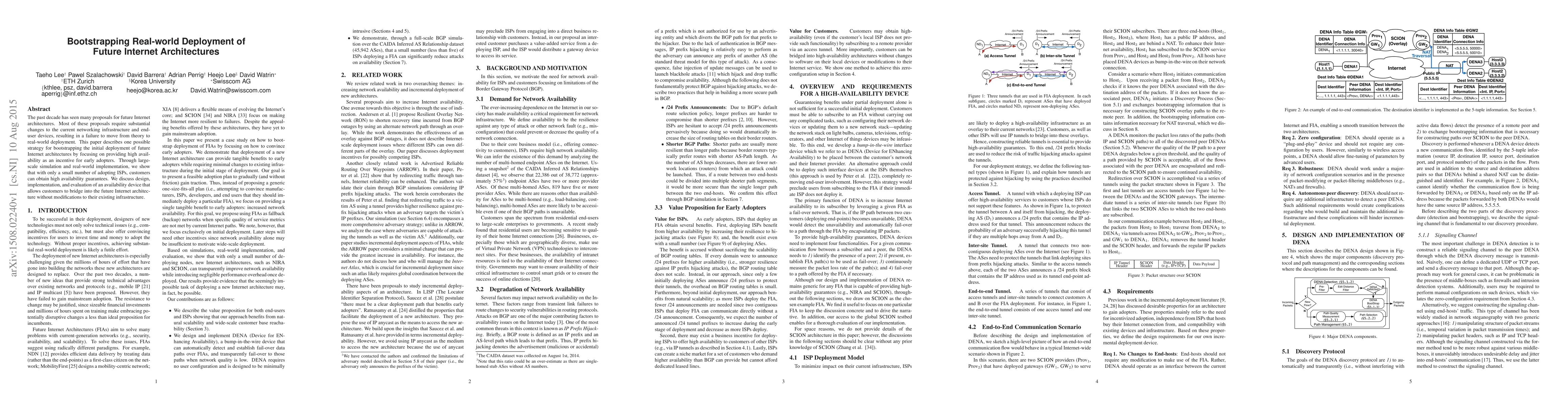This paper proposes a strategy to facilitate the initial deployment of future Internet architectures by incentivizing early adopters through high availability. The authors demonstrate via simulation and real-world implementation that a small number of adopting ISPs can provide customers with high availability guarantees, using an availability device that bridges to the new architecture without requiring changes to existing infrastructure.