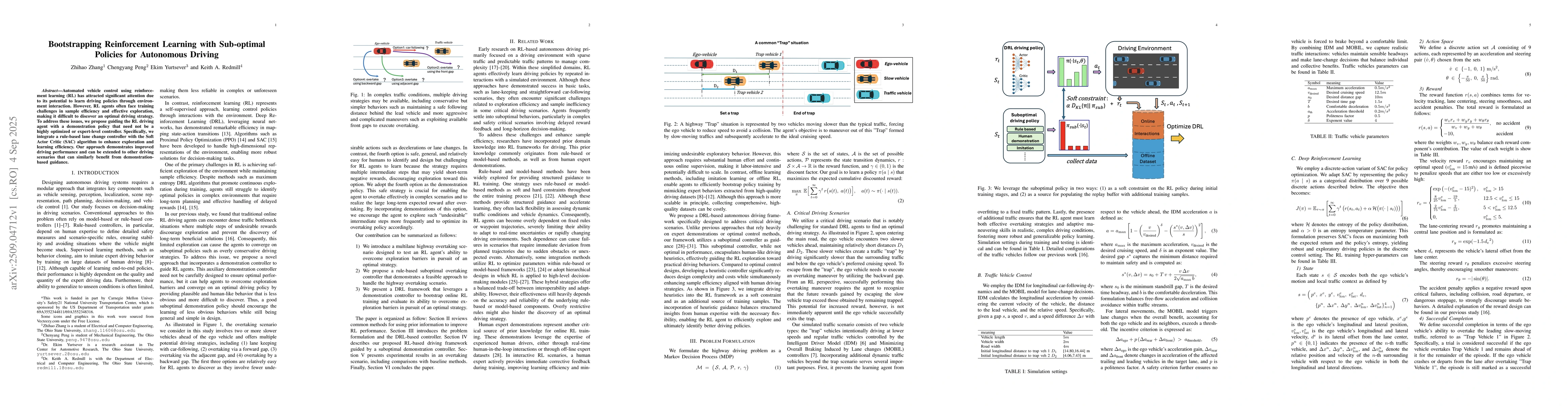 Automated vehicle control using reinforcement learning (RL) has attracted significant attention due to its potential to learn driving policies through environment interaction. However, RL agents often face training challenges in sample efficiency and effective exploration, making it difficult to discover an optimal driving strategy. To address these issues, we propose guiding the RL driving agent with a demonstration policy that need not be a highly optimized or expert-level controller. Specifically, we integrate a rule-based lane change controller with the Soft Actor Critic (SAC) algorithm to enhance exploration and learning efficiency. Our approach demonstrates improved driving performance and can be extended to other driving scenarios that can similarly benefit from demonstration-based guidance.