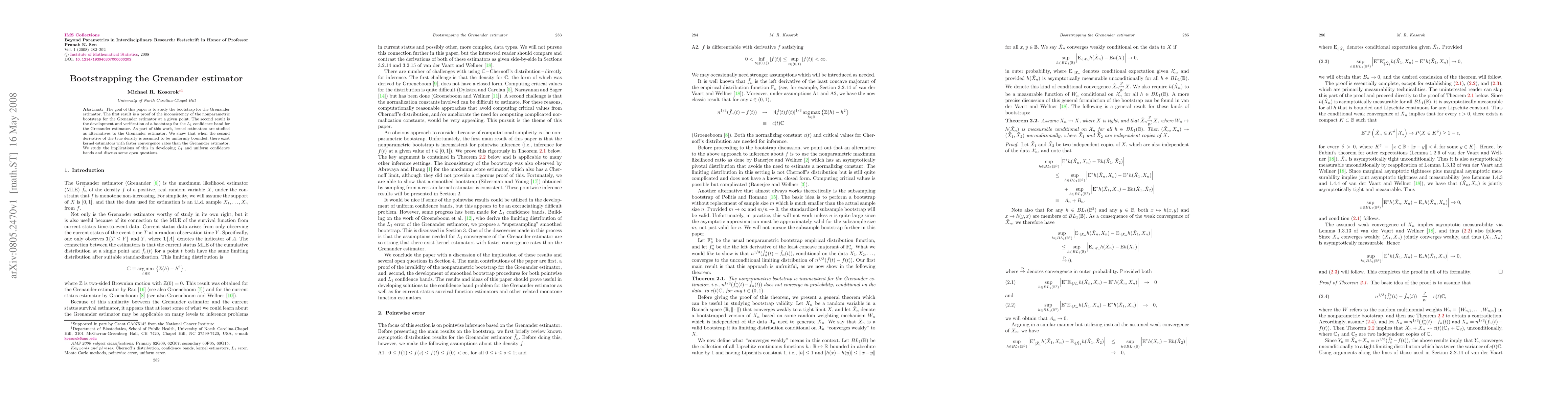 The paper studies the bootstrap for the Grenander estimator, proving its inconsistency at a given point and developing a bootstrap for the $L_1$ confidence band for the Grenander estimator. It also explores kernel estimators as alternatives, showing faster convergence rates under certain conditions.