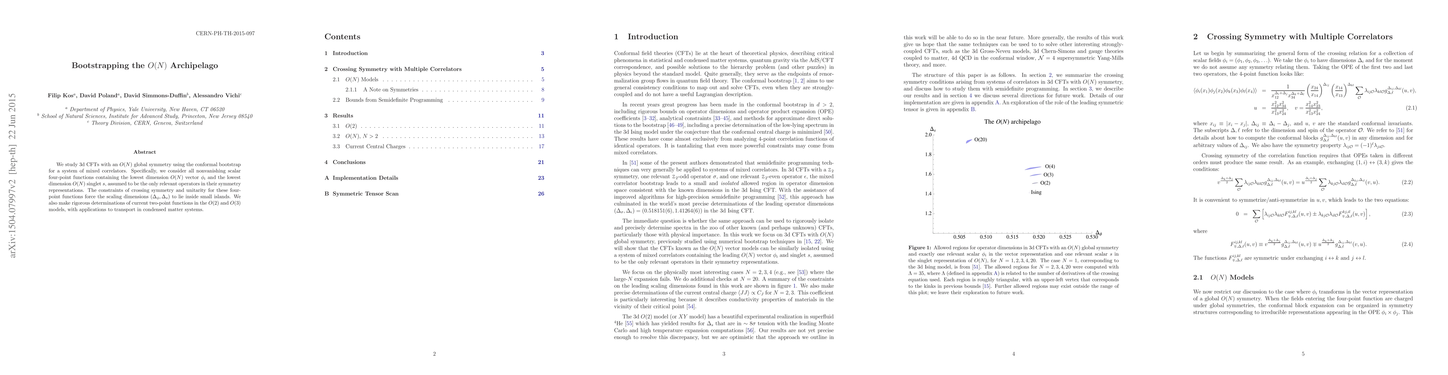 This paper utilizes conformal bootstrap methods to analyze 3d conformal field theories (CFTs) with $O(N)$ symmetry, focusing on mixed correlators involving a vector and a singlet. It reveals constraints from crossing symmetry and unitarity that determine scaling dimensions and applies these insights to transport phenomena in condensed matter systems.