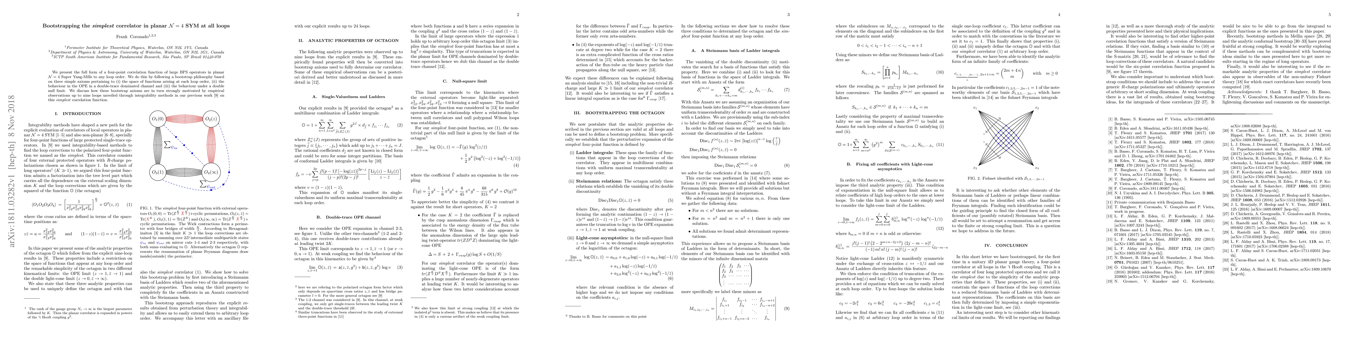 This research presents a complete formulation of a four-point correlation function in planar N = 4 Super Yang-Mills theory at all loop orders, derived through a bootstrap approach based on three axioms. These axioms are supported by empirical observations from previous integrability studies.