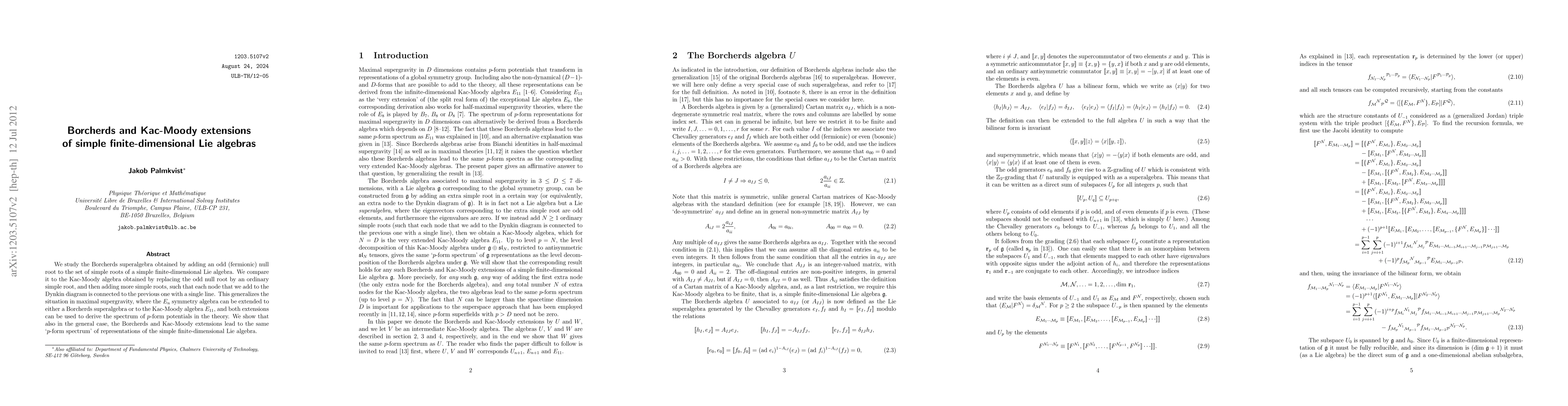 This paper investigates Borcherds superalgebras and Kac-Moody algebras derived from simple finite-dimensional Lie algebras by modifying their root systems. It shows that both extensions yield the same spectrum of p-form potential representations, analogous to the E(n) symmetry algebra extensions in maximal supergravity.