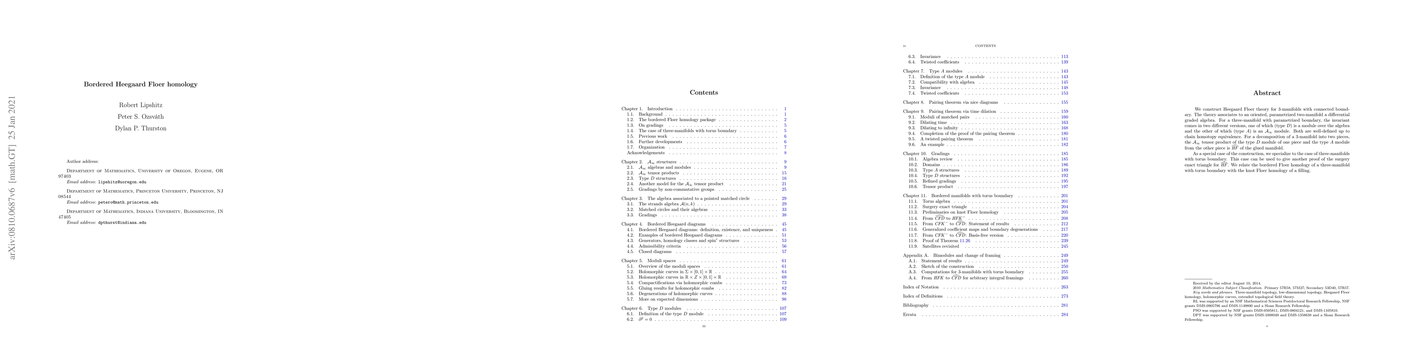 We construct Heegaard Floer theory for 3-manifolds with connected boundary. The theory associates to an oriented, parametrized two-manifold a differential graded algebra. For a three-manifold with parametrized boundary, the invariant comes in two different versions, one of which (type D) is a module over the algebra and the other of which (type A) is an A-infinity module. Both are well-defined up to chain homotopy equivalence. For a decomposition of a 3-manifold into two pieces, the A-infinity tensor product of the type D module of one piece and the type A module from the other piece is HF^ of the glued manifold. As a special case of the construction, we specialize to the case of three-manifolds with torus boundary. This case can be used to give another proof of the surgery exact triangle for HF^. We relate the bordered Floer homology of a three-manifold with torus boundary with the knot Floer homology of a filling.