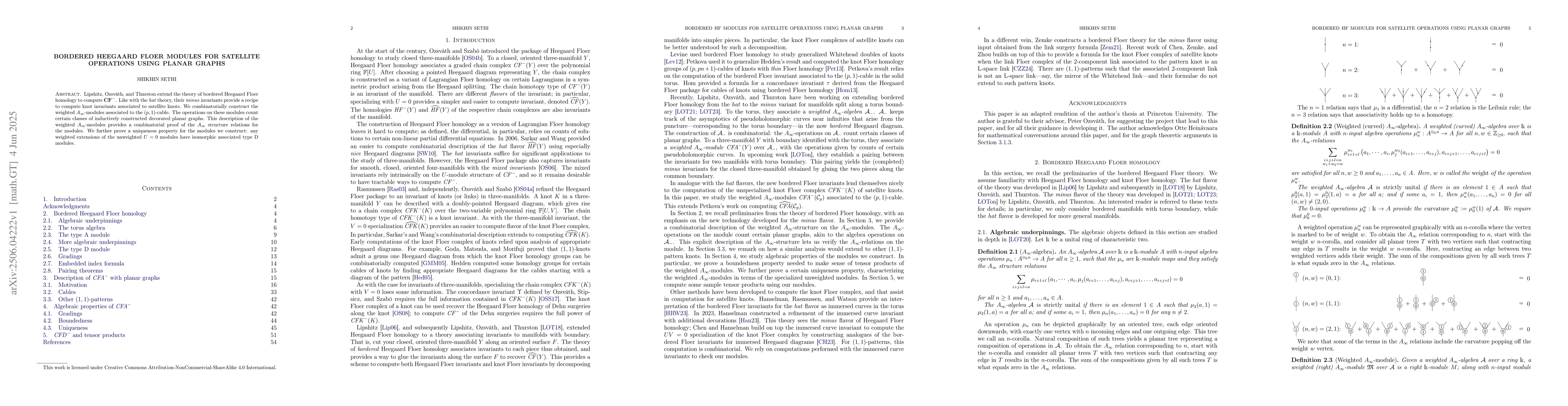This work extends existing bordered Heegaard Floer homology theory by providing a combinatorial description and proof of $A_\infty$ structure relations, offering a novel approach to compute knot invariants for satellite knots.