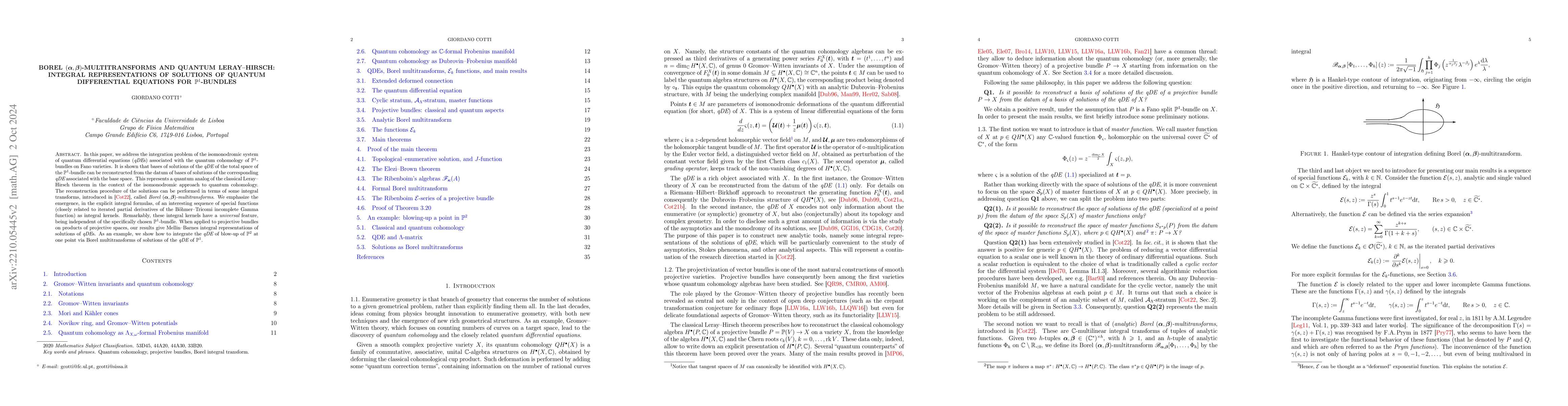 This paper reconstructs solutions of quantum differential equations associated with $\mathbb P^1$-bundles using Borel $(\alpha,\beta)$-multitransforms, offering a quantum analog of the classical Leray-Hirsch theorem. It introduces special functions as integral kernels for these transforms, which are universally applicable and provide Mellin-Barnes representations for specific bundles, such as the blow-up of $\mathbb P^2$.