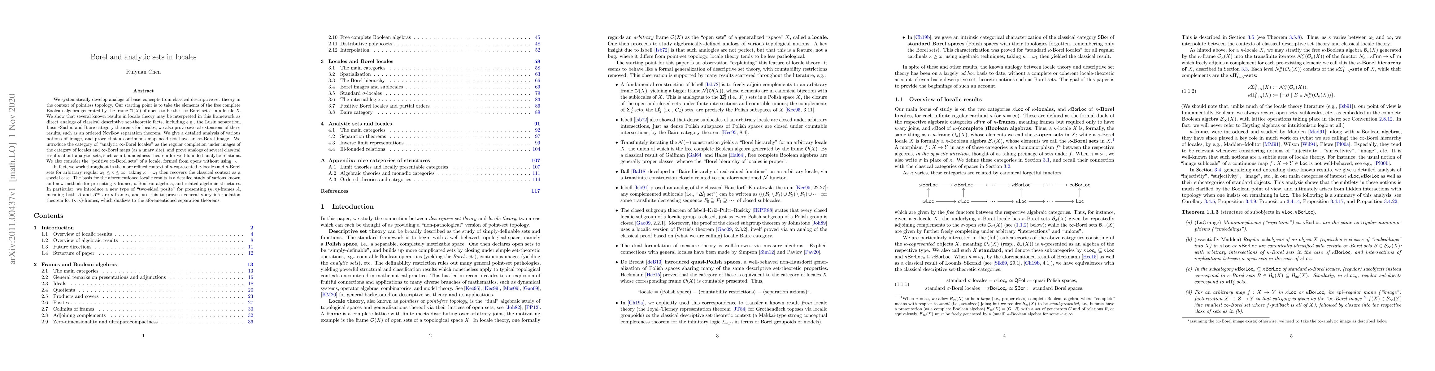 The paper extends classical descriptive set theory into the realm of locales, providing new algebraic tools and results that can be interpreted topologically, thus offering a novel perspective on the study of complex mathematical structures.
