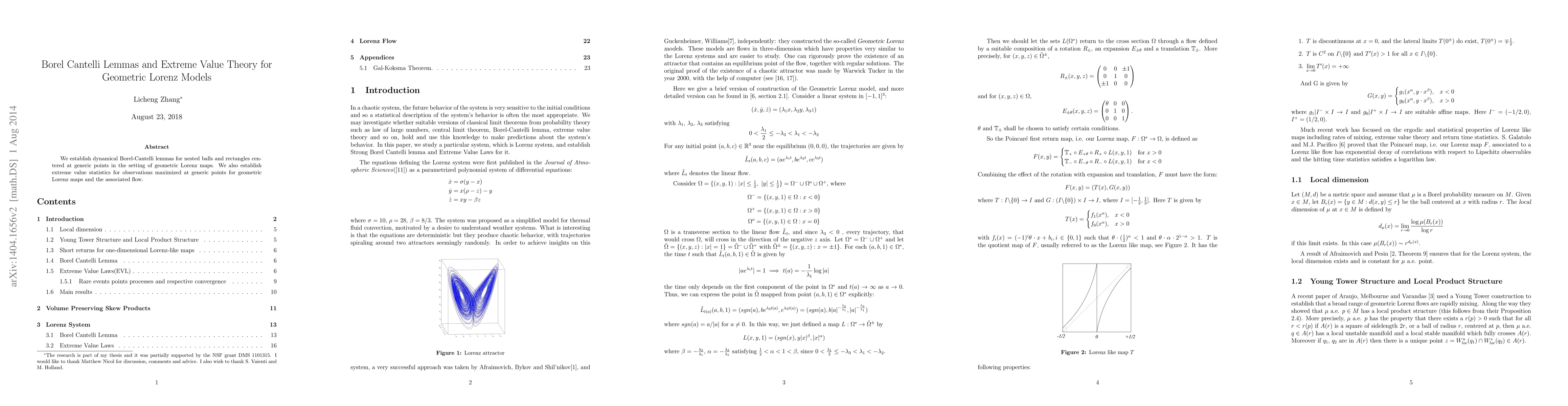 Summary: This paper develops dynamical Borel-Cantelli lemmas for geometric Lorenz maps and establishes extreme value statistics for observations maximized at generic points, contributing to the understanding of these complex dynamical systems.