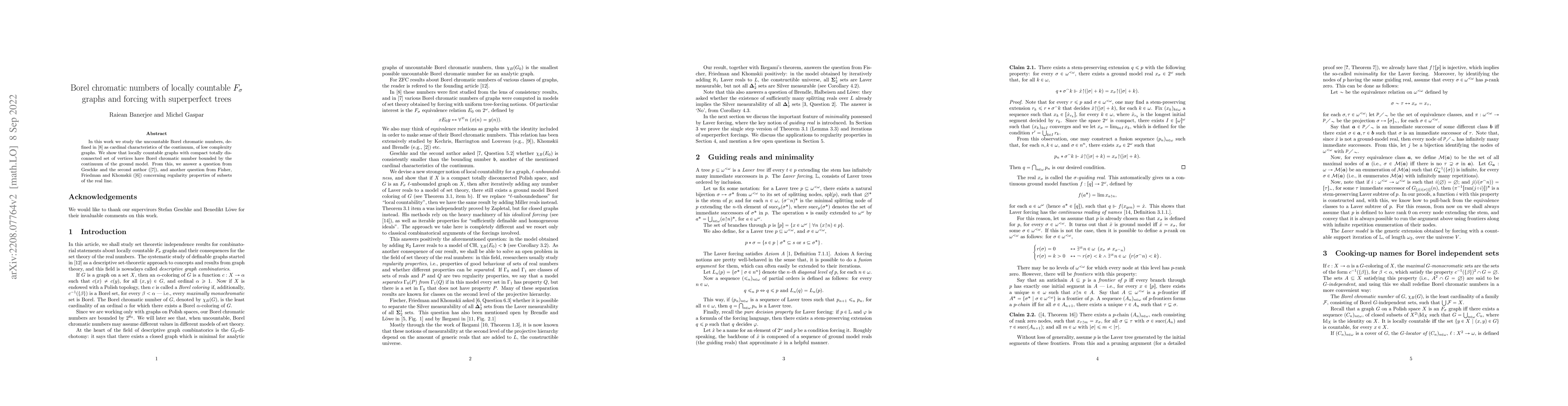 This paper investigates the Borel chromatic numbers of locally countable $F_\sigma$ graphs, demonstrating that their chromatic numbers are bounded by the continuum in a model obtained by adding $\aleph_2$ Laver reals. This result answers questions from Geschke and the second author, as well as from Fisher, Friedman, and Khomskii regarding the regularity properties of subsets of the real line.