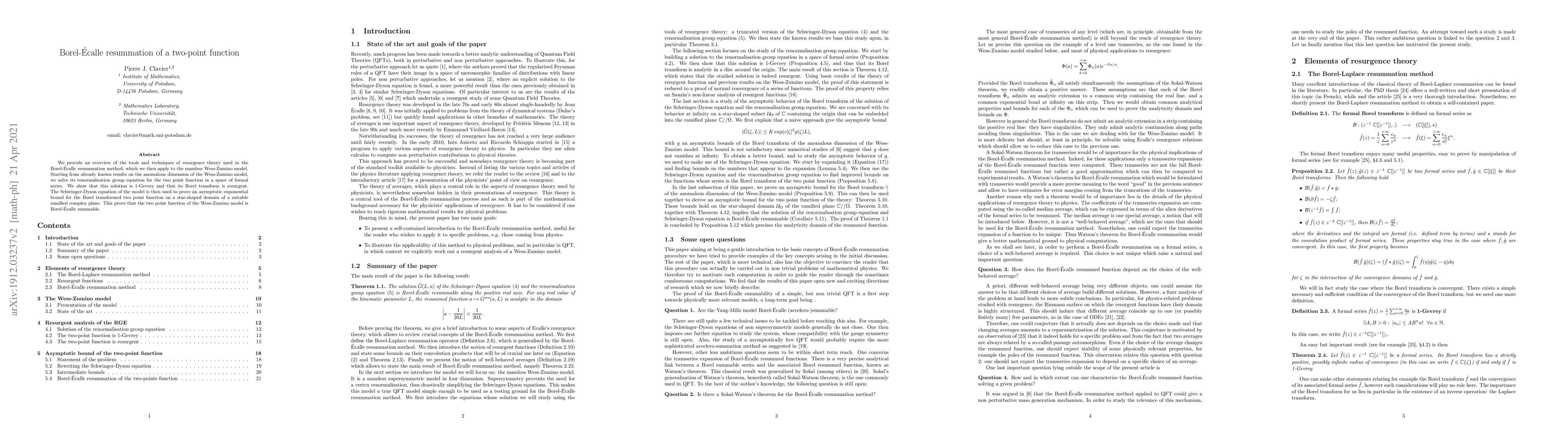 Researchers apply Borel-Ecalle resummation to the massless Wess-Zumino model, proving its two-point function is summable with an asymptotic exponential bound.