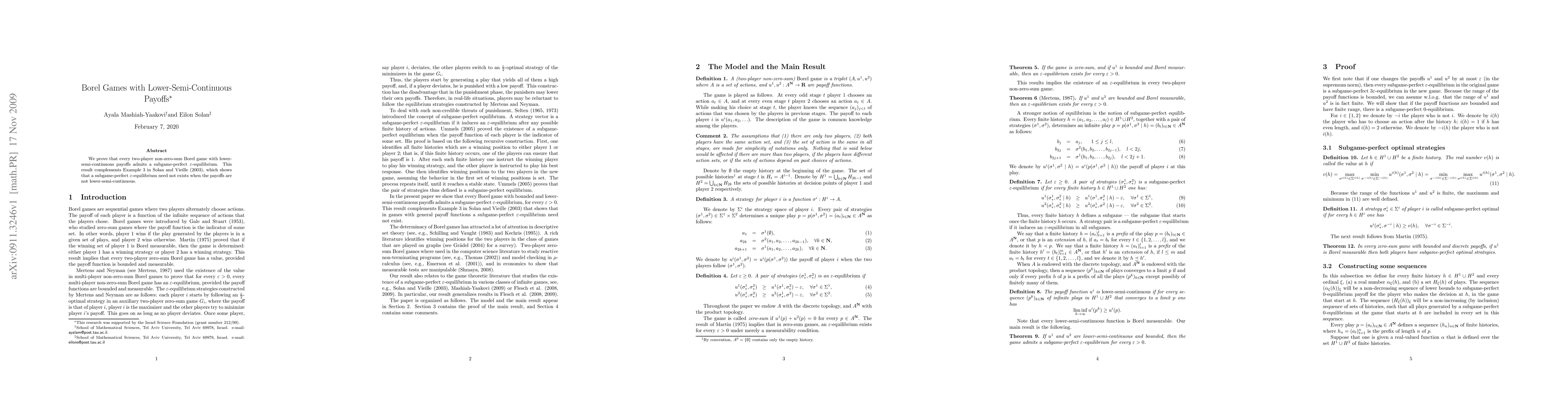 We prove that every two-player non-zero-sum Borel game with lower-semi-continuous payoffs admits a subgame-perfect $\ep$-equilibrium. This result complements Example 3 in Solan and Vieille (2003), which shows that a subgame-perfect $\ep$-equilibrium need not exists when the payoffs are not lower-semi-continuous.
