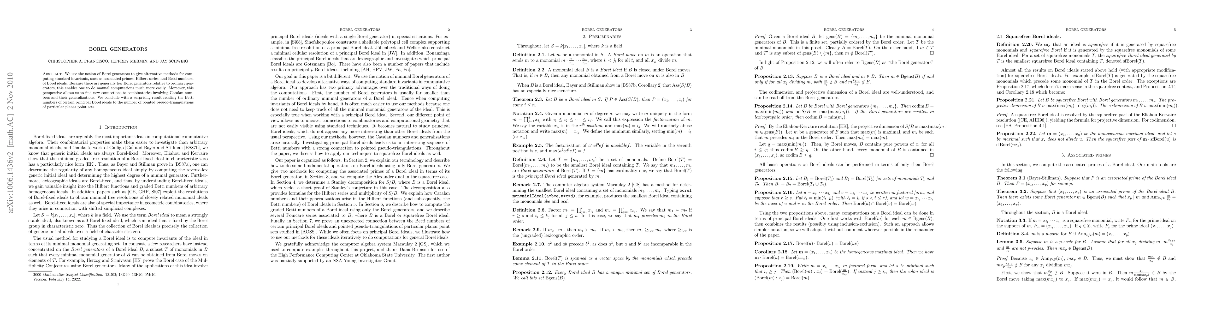 Researchers use Borel generators to simplify calculations of algebraic invariants like prime ideals and Betti numbers, enabling easier manual computations and revealing connections to combinatorics.