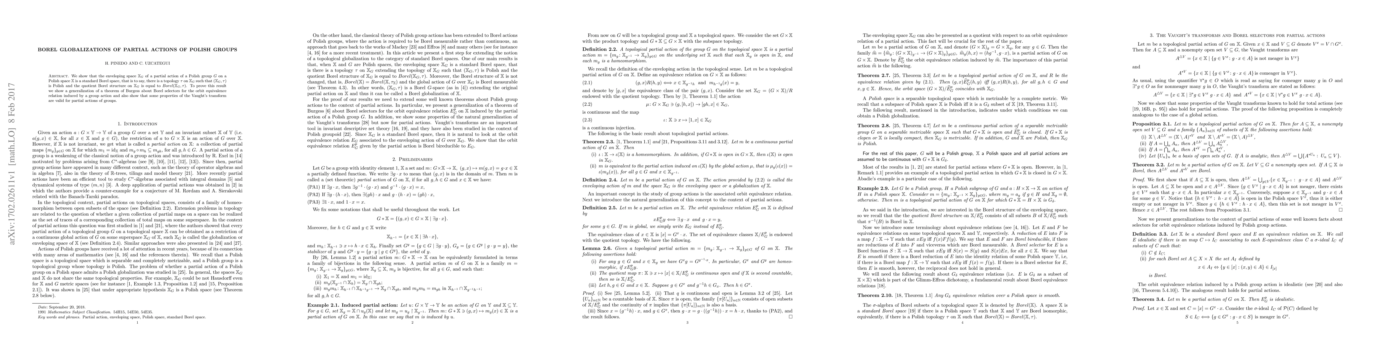 We show that the enveloping space $X_G$ of a partial action of a Polish group $G$ on a Polish space $X$ is a standard Borel space, that is to say, there is a topology $\tau$ on $X_G$ such that $(X_G, \tau)$ is Polish and the quotient Borel structure on $X_G$ is equal to $Borel(X_G,\tau)$. To prove this result we show a generalization of a theorem of Burgess about Borel selectors for the orbit equivalence relation induced by a group action and also show that some properties of the Vaught's transform are valid for partial actions of groups.