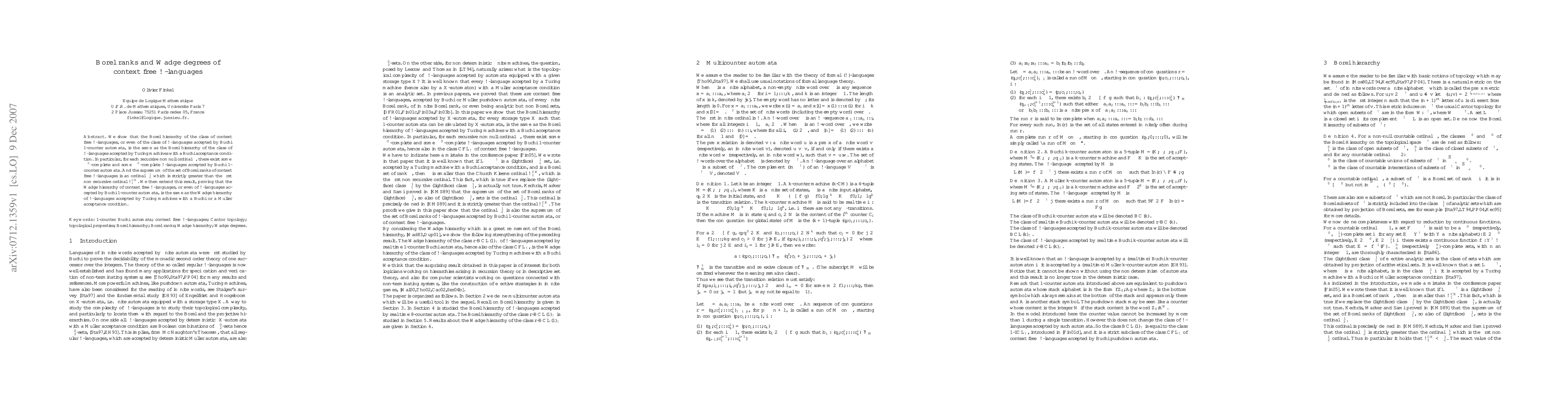 We show that, from a topological point of view, considering the Borel and the Wadge hierarchies, 1-counter B\"uchi automata have the same accepting power than Turing machines equipped with a B\"uchi acceptance condition. In particular, for every non null recursive ordinal alpha, there exist some Sigma^0_alpha-complete and some Pi^0_alpha-complete omega context free languages accepted by 1-counter B\"uchi automata, and the supremum of the set of Borel ranks of context free omega languages is the ordinal gamma^1_2 which is strictly greater than the first non recursive ordinal. This very surprising result gives answers to questions of H. Lescow and W. Thomas [Logical Specifications of Infinite Computations, In:"A Decade of Concurrency", LNCS 803, Springer, 1994, p. 583-621].