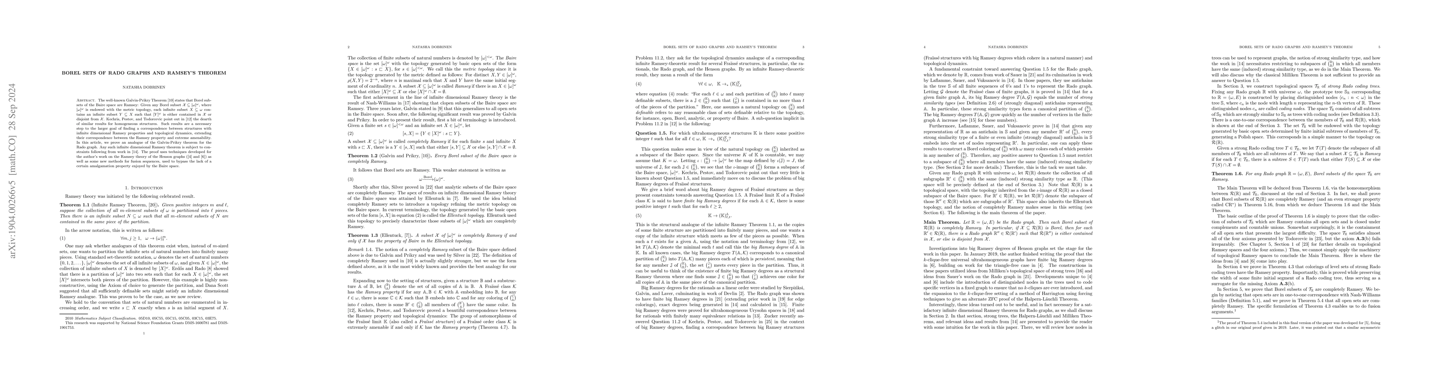 The well-known Galvin-Prikry Theorem states that Borel subsets of the Baire space are Ramsey: Given any Borel subset $\mathcal{X}\subseteq [\omega]^{\omega}$, where $[\omega]^{\omega}$ is endowed with the metric topology, each infinite subset $X\subseteq \omega$ contains an infinite subset $Y\subseteq X$ such that $[Y]^{\omega}$ is either contained in $\mathcal{X}$ or disjoint from $\mathcal{X}$. Kechris, Pestov, and Todorcevic point out in their seminal 2005 paper the dearth of similar results for homogeneous structures. Such results are a necessary step to the larger goal of finding a correspondence between structures with infinite dimensional Ramsey properties and topological dynamics, extending their correspondence between the Ramsey property and extreme amenability. In this article, we prove an analogue of the Galvin-Prikry theorem for the Rado graph. Any such infinite dimensional Ramsey theorem is subject to constraints following from the 2006 work of Laflamme, Sauer, and Vuksanovic. The proof uses techniques developed for the author's work on the Ramsey theory of the Henson graphs as well as some new methods for fusion sequences, used to bypass the lack of a certain amalgamation property enjoyed by the Baire space.