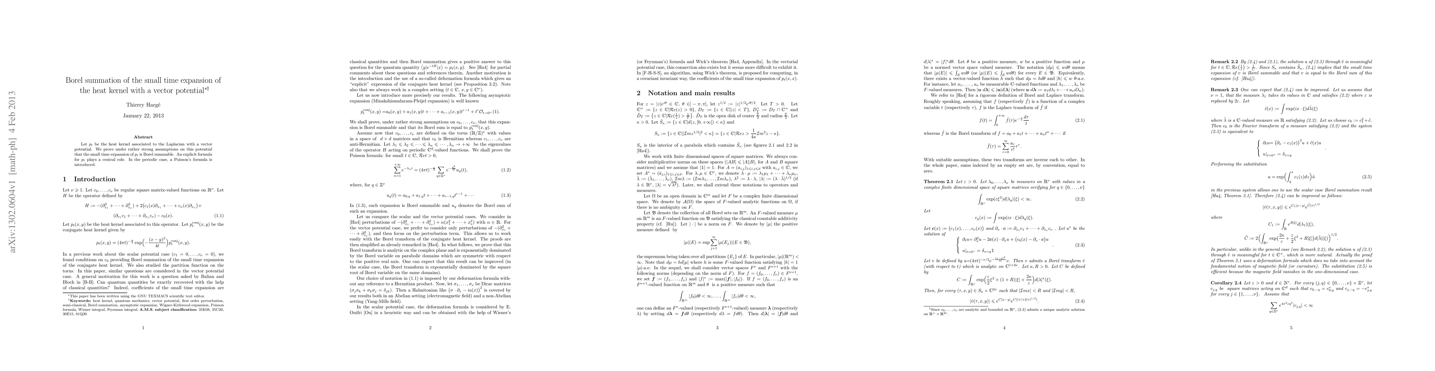 This paper investigates the Borel summability of a heat kernel with a vector potential, leading to a Poisson formula on the torus.