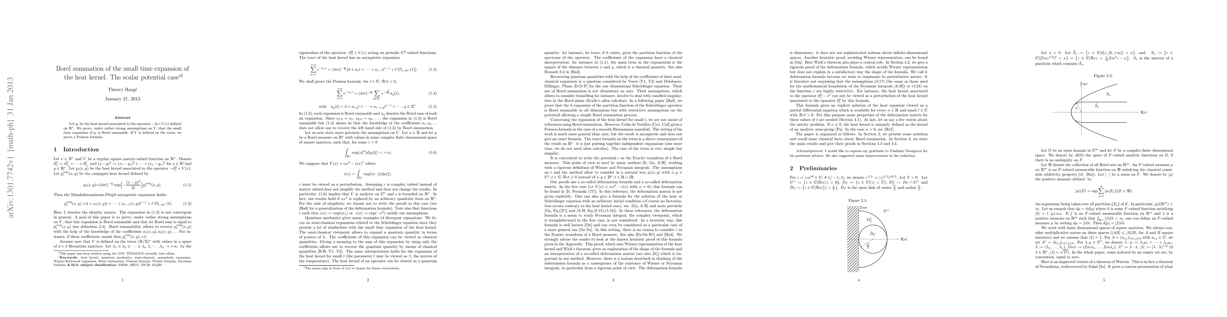 We study the Borel summability of the small time expansion of the heat kernel for the Schr\"odinger operator in several dimensions. On the torus, we prove a Poisson formula.