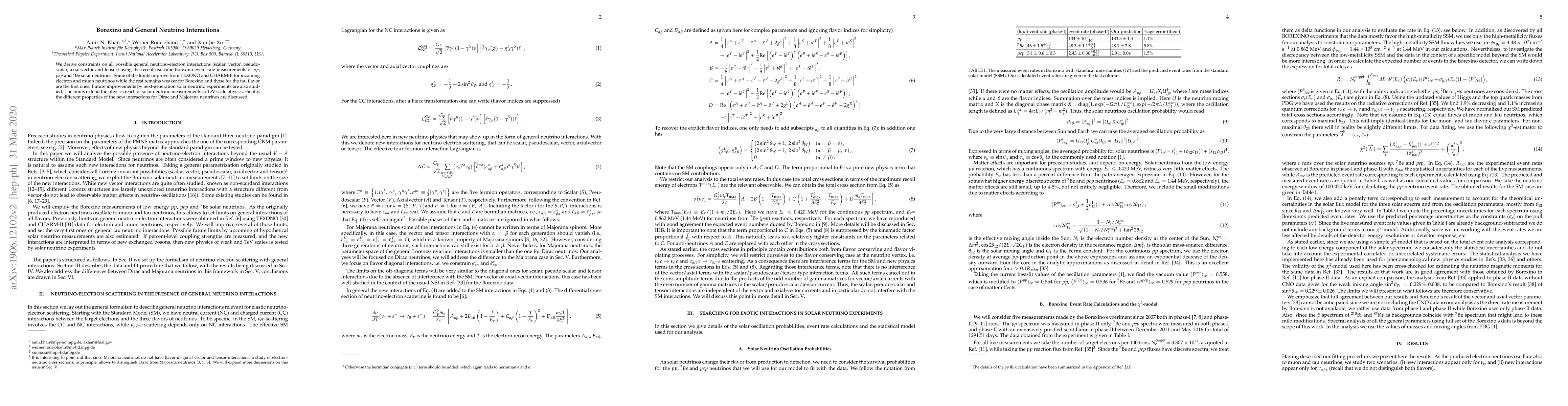 Borexino sets new constraints on general neutrino-electron interactions, improving previous limits and extending the reach to TeV-scale physics. The study also discusses implications for Dirac and Majorana neutrinos and anticipates future improvements from next-generation solar neutrino experiments.