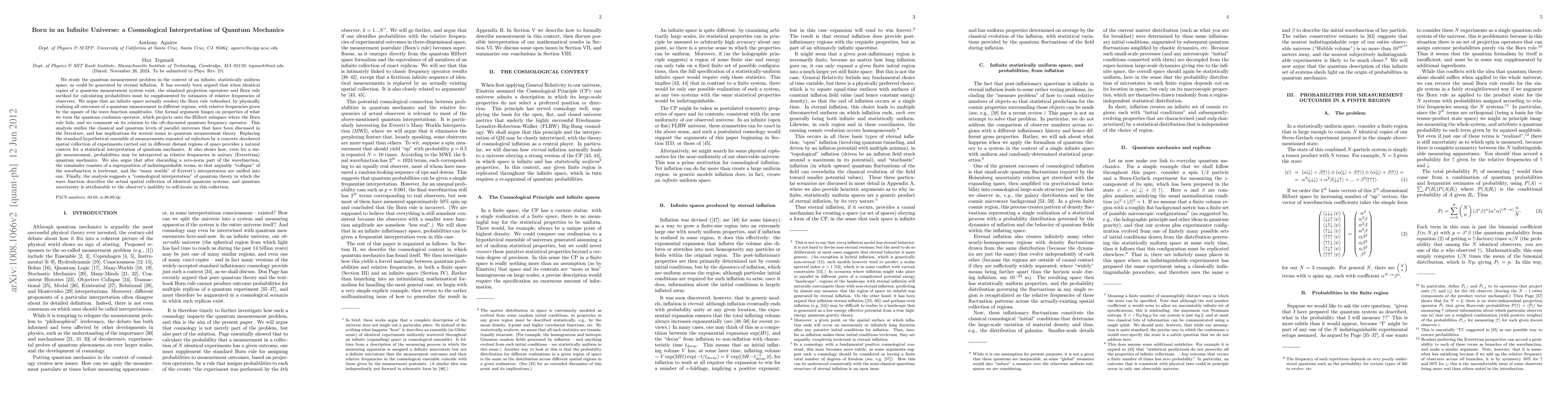 This paper explores the quantum measurement problem in an infinite, eternally inflationary universe, proposing that the Born rule becomes redundant. It argues that all quantum measurement outcomes exist in different regions of the infinite space, with probabilities corresponding to the wave function's squared amplitudes, thereby interpreting probabilities as relative frequencies in a unitary quantum mechanics framework.