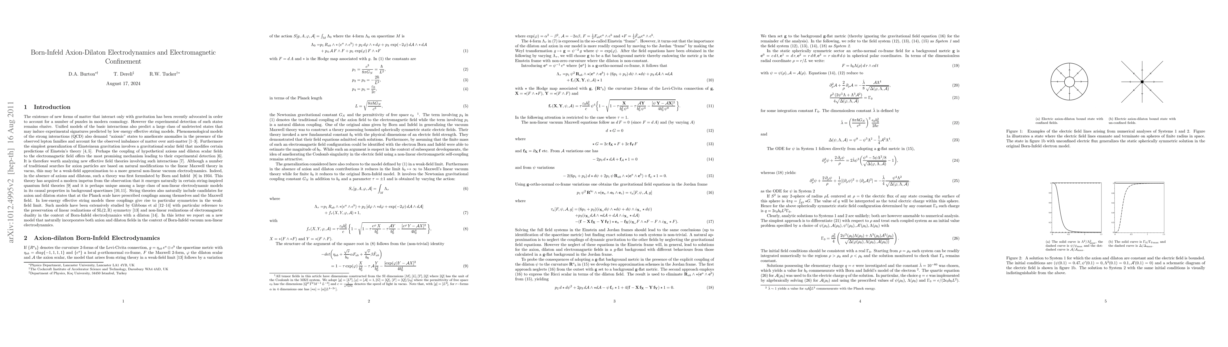 The paper constructs a generalized Born-Infeld electrodynamics with axion and dilaton fields, showing it can reduce to Maxwell's theory or the original Born-Infeld model. Numerical results suggest the existence of axion-dilaton bound states that can confine electric flux.