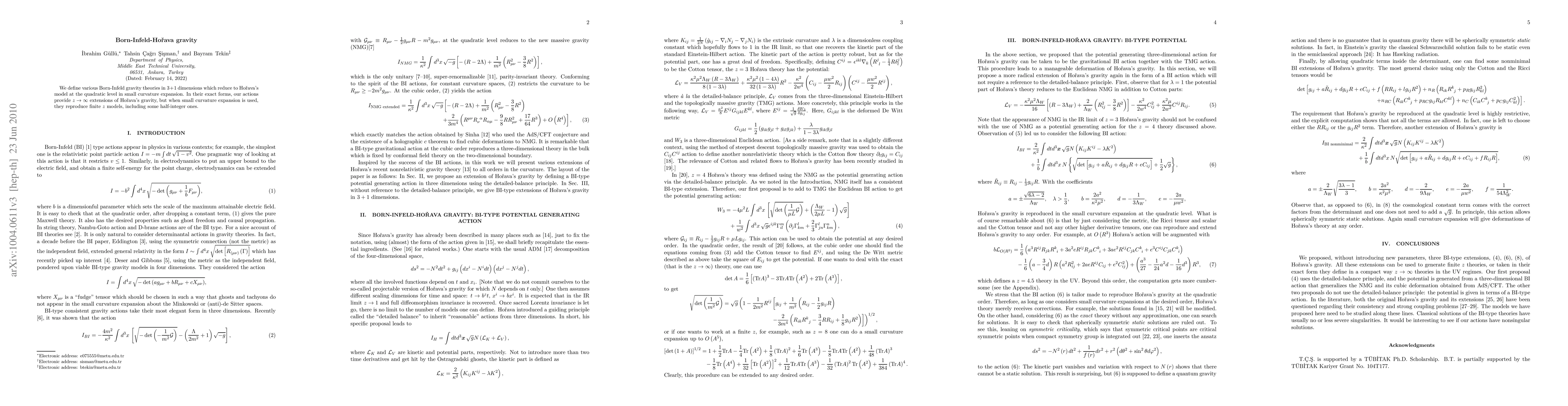 This paper proposes Born-Infeld gravity theories in 3+1 dimensions that generalize Horava's model by extending it to higher-order curvature terms, while still capturing finite z models in small curvature expansions. These exact actions also include half-integer z models.