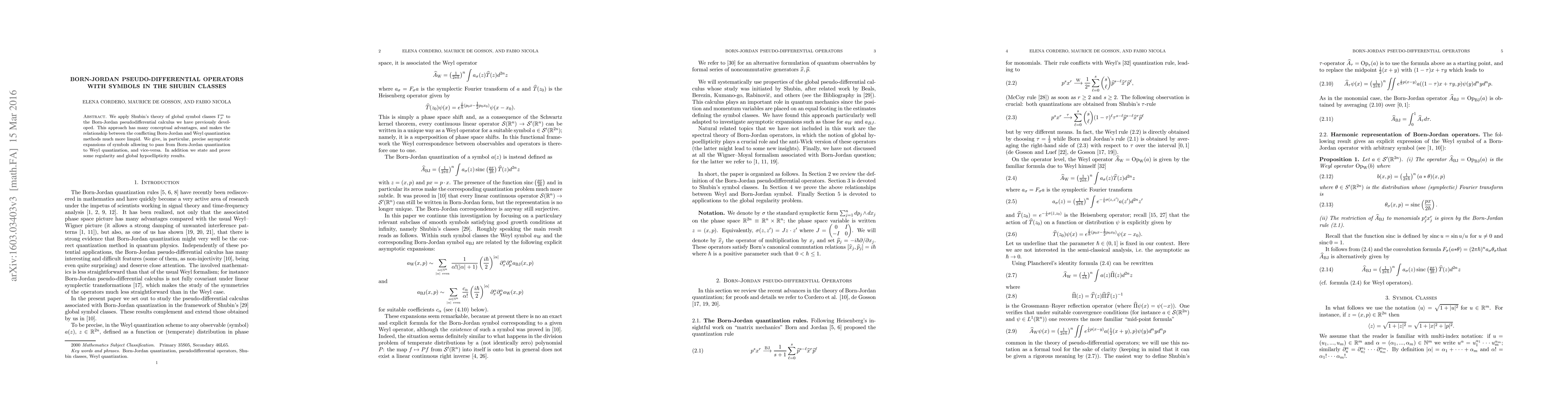 This paper applies Shubin's theory of global symbol classes to Born-Jordan pseudodifferential operators, clarifying the relationship between Born-Jordan and Weyl quantization methods and providing precise asymptotic expansions for symbol transitions. It also establishes regularity and global hypoellipticity results.