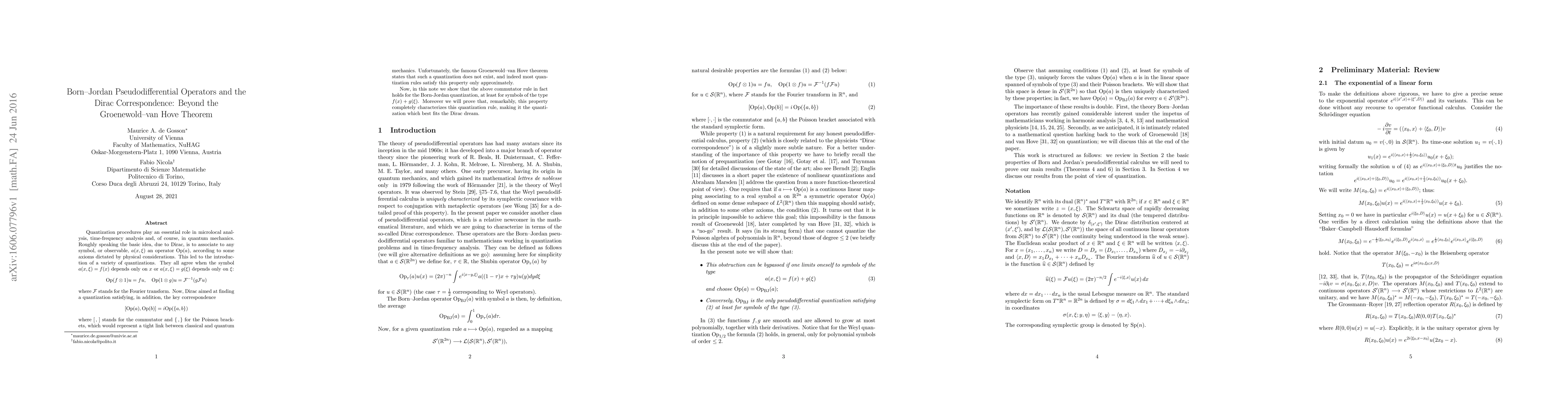 A research paper proves that the Born-Jordan pseudodifferential operator satisfies a key correspondence rule in quantum mechanics, linking classical and quantum physics, and characterizes this quantization as the best fit for Dirac's dream.