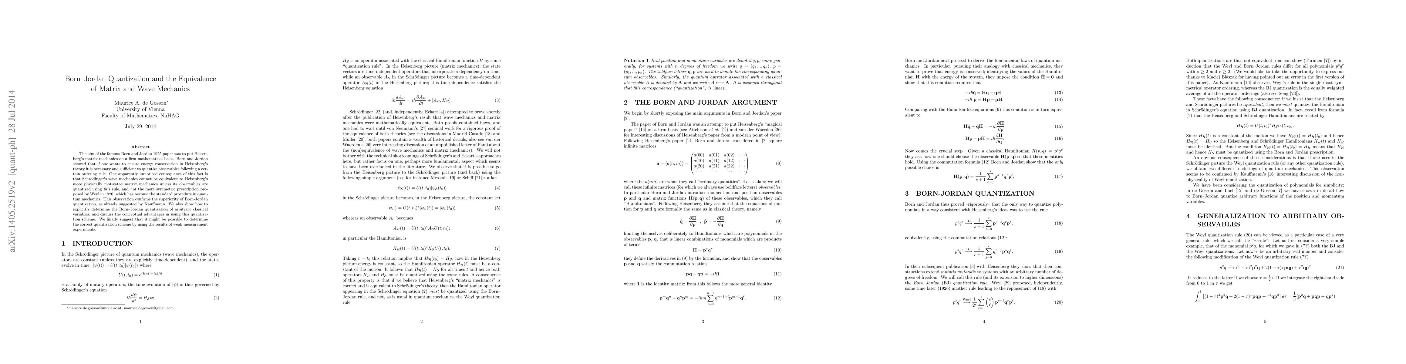 The Born-Jordan quantization method provides a mathematical foundation for Heisenberg's matrix mechanics and demonstrates that Schrödinger's wave mechanics requires the same quantization rule for equivalence, rather than the symmetric Weyl prescription. This highlights the conceptual benefits of Born-Jordan quantization and suggests its determination could be aided by weak measurement experiments.
