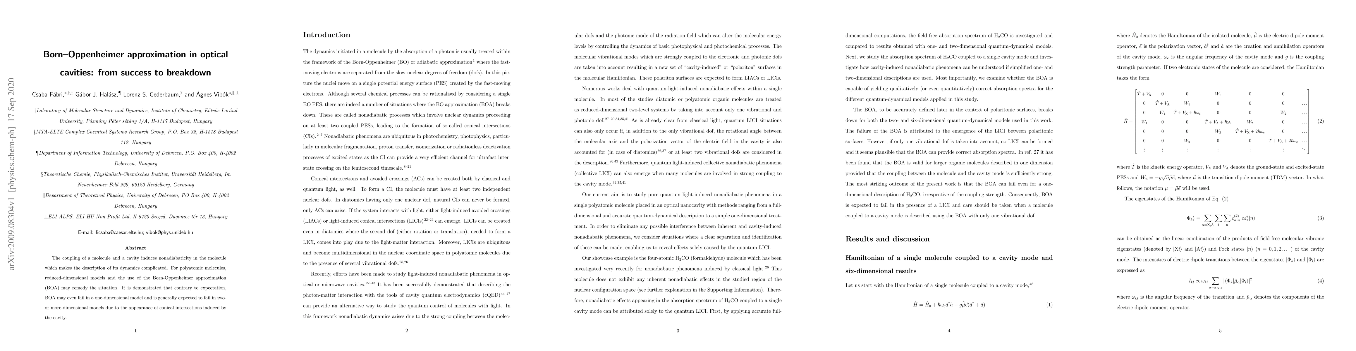 Researchers found that the Born-Oppenheimer approximation may fail in optical cavities due to conical intersections, even in one-dimensional models, complicating the description of molecule dynamics.