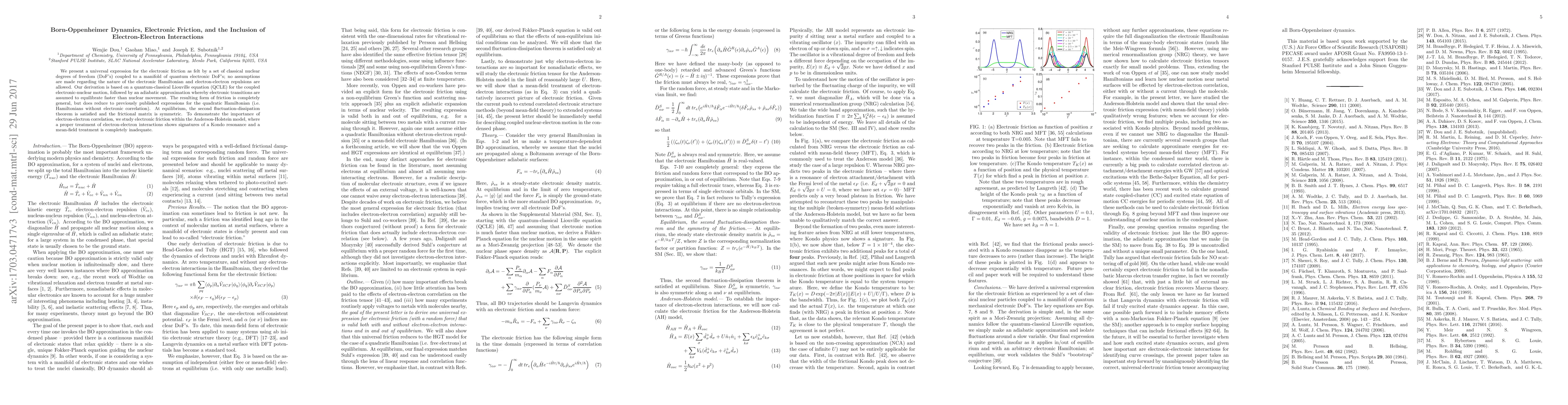 We present a universal expression for the electronic friction as felt by a set of classical nuclear degrees of freedom (DoF's) coupled to a manifold of quantum electronic DoF's; no assumptions are made regarding the nature of the electronic Hamiltonian and electron-electron repulsions are allowed. Our derivation is based on a quantum-classical Liouville equation (QCLE) for the coupled electronic-nuclear motion, followed by an adiabatic approximation whereby electronic transitions are assumed to equilibrate faster than nuclear movement. The resulting form of friction is completely general, but does reduce to previously published expressions for the quadratic Hamiltonian (i.e. Hamiltonians without electronic correlation). At equilibrium, the second fluctuation-dissipation theorem is satisfied and the frictional matrix is symmetric. To demonstrate the importance of electron-electron correlation, we study electronic friction within the Anderson-Holstein model, where a proper treatment of electron-electron interactions shows signatures of a Kondo resonance and a mean-field treatment is completely inadequate.