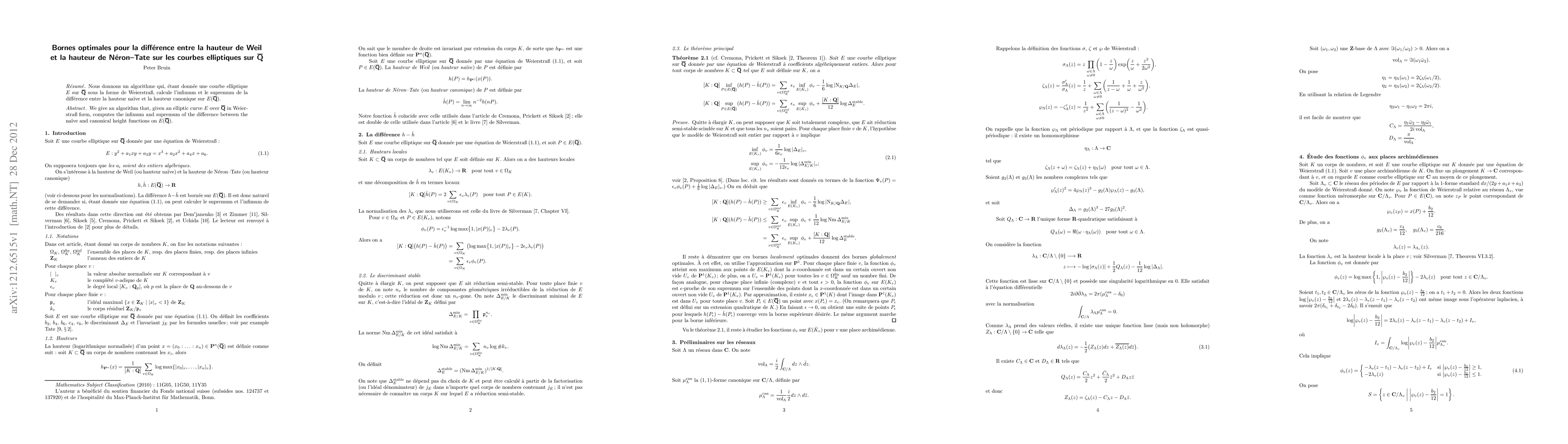We give an algorithm that, given an elliptic curve $E$ over $\Qbar$ in Weierstra{\ss} form, computes the infimum and supremum of the difference between the na\"{\i}ve and canonical height functions on $E(\Qbar)$. ----- Nous donnons un algorithme qui, \'etant donn\'ee une courbe elliptique $E$ sur $\Qbar$ sous la forme de Weierstra\ss, calcule l'infimum et le supremum de la diff\'erence entre la hauteur na\"{\i}ve et la hauteur canonique sur $E(\Qbar)$.