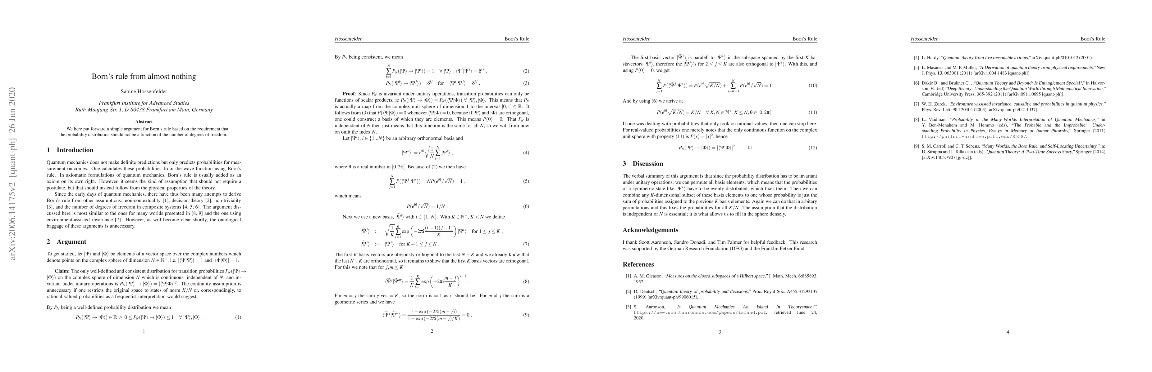 Summary: This paper proposes a straightforward derivation of Born's rule from the premise that the probability distribution must remain independent of the number of degrees of freedom, offering minimal assumptions for quantum measurement.