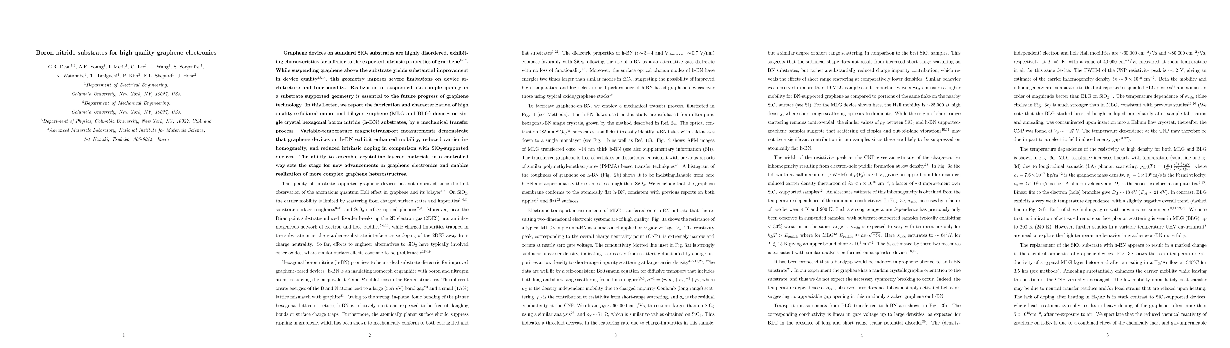 This research demonstrates the fabrication of high-quality graphene devices on hexagonal boron nitride (h-BN) substrates, showing improved mobility and reduced carrier inhomogeneity compared to SiO2 substrates. The study paves the way for advanced graphene electronics and complex heterostructures.