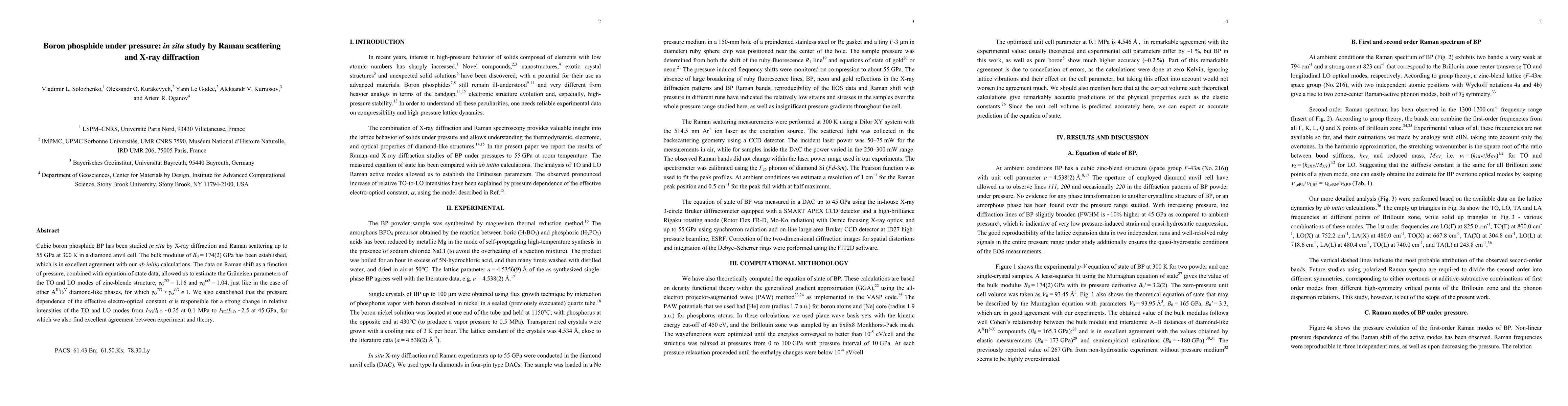The paper presents an in situ study of BP's structural and vibrational properties under pressure, utilizing advanced X-ray diffraction and Raman scattering techniques, combined with ab initio calculations.