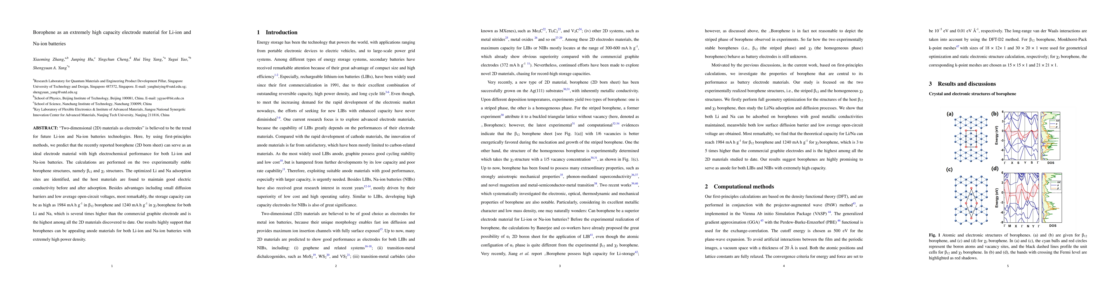 Research predicts that borophene, a newly discovered two-dimensional material, could serve as an ideal electrode with extremely high capacity for both Li-ion and Na-ion batteries, significantly outperforming commercial graphite and other 2D materials. Its high storage capacity and favorable electrical properties make it a promising candidate for future battery technologies.