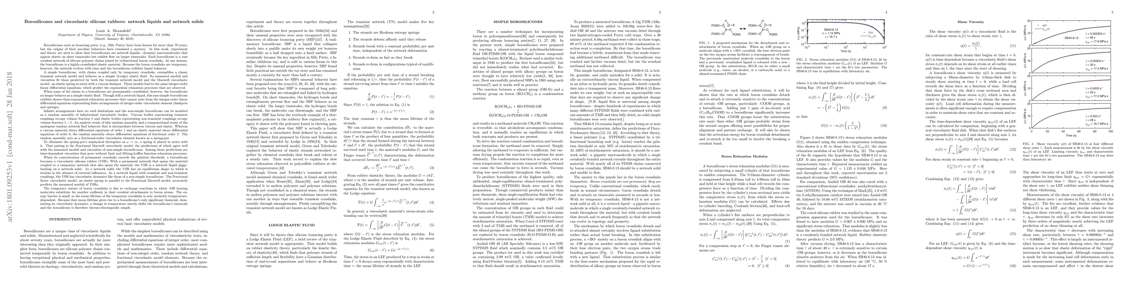Borosilicones (e.g., Silly Putty) have been known for 70 years, but their peculiar behaviors have remain unexplained. In this work, experiment and theory are used to show that they are network liquids---dynamic macromolecules that appear elastic on short timescales but exhibit flow on longer timescales. Each borosilicone is a vast covalent network of silicone polymer chains joined by trifunctional boron crosslinks. At any instant, the borosilicone is a highly-crosslinked elastic material. Because the boron crosslinks are temporary, however, the network evolves with time and the borosilicone exhibits liquid behavior. A simple borosilicone exemplifies a classic transient network model and behaves as a simple (Lodge) elastic fluid. Its measured moduli and viscosities fit those predicted by the transient network model and the Maxwell viscoelastic model: a spring in series with a dashpot, including the observed exponential relaxation processes. When a borosilicone includes permanent crosslinks, however, it no longer behaves as a simple elastic fluid. Its measured moduli and viscosities fit those predicted by the Fractional Maxwell viscoelastic model: a spring in series with a the spring-pot, including the observed slower-than-exponential relaxation processes. Beyond the gelation threshold, a borosilicone becomes a viscoelastic silicone rubber (VSR). With a permanent network that spans the material coupled to a temporary network that also spans the material, the VSR is a network liquid piggybacking on a network solid. The Fractional Zener viscoelastic model: an elastic spring in parallel to the Fractional Maxwell model, accurately predicts the measured moduli of VSRs. The temporary nature of boron crosslinks is due to exchange reactions. Because the mean lifetime of temporary crosslinks is a borosilicone's only significant timescale, it exhibits thermo-rheological simplicity.