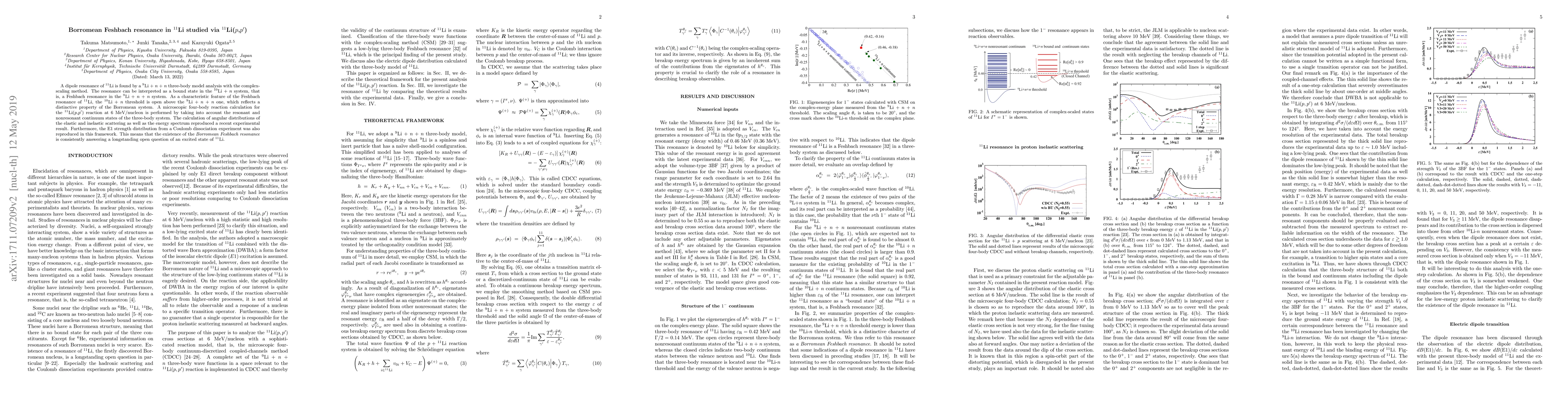 This study identifies a new dipole resonance in 11Li, interpreted as a Borromean Feshbach resonance in the 9Li + n + n system, characterized by an open 10Li + n threshold. Microscopic calculations for the 11Li(p,p') reaction at 6 MeV/nucleon successfully reproduce observed angular distributions and breakup energy spectra.