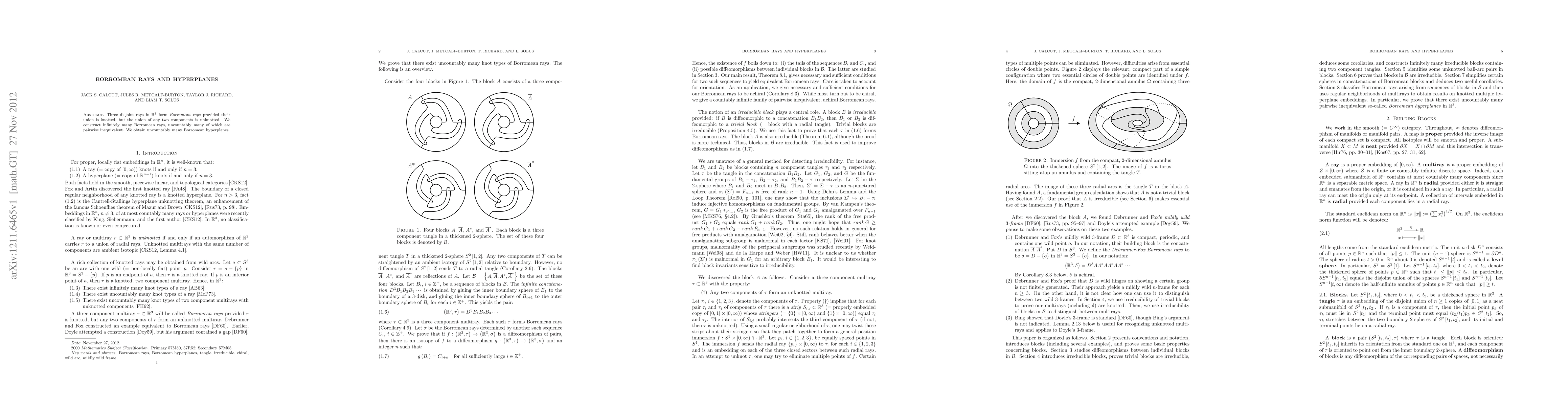 Three disjoint rays in euclidean 3-space form Borromean rays provided their union is knotted, but the union of any two components is unknotted. We construct infinitely many Borromean rays, uncountably many of which are pairwise inequivalent. We obtain uncountably many Borromean hyperplanes.