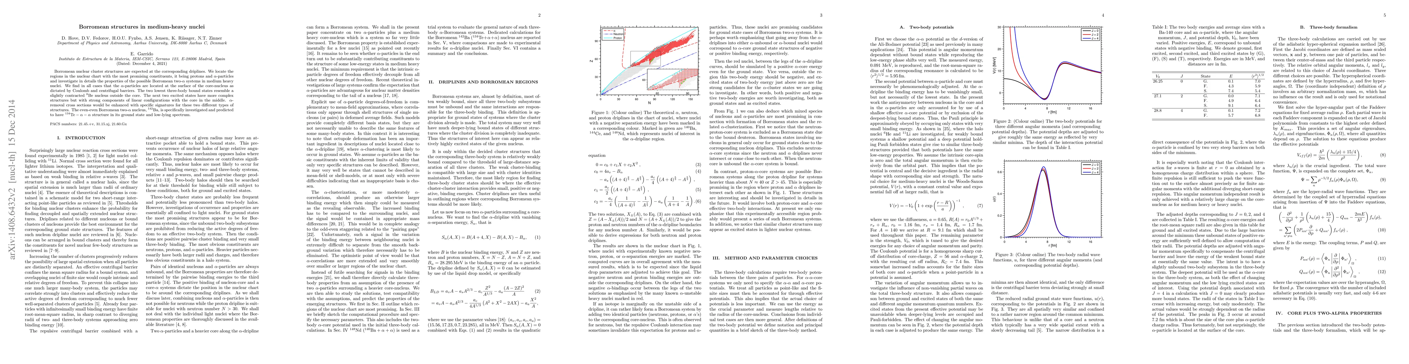 Borromean nuclear cluster structures are expected at the corresponding driplines. We locate the regions in the nuclear chart with the most promising constituents, it being protons and alpha-particles and investigate in details the properties of the possible borromean two-alpha systems in medium heavy nuclei. We find in all cases that the alpha-particles are located at the surface of the core-nucleus as dictated by Coulomb and centrifugal barriers. The two lowest three-body bound states resemble a slightly contracted $^{8}\text{Be}$ nucleus outside the core. The next two excited states have more complex structures but with strong components of linear configurations with the core in the middle. Alpha-removal cross sections would be enhanced with specific signatures for these two different types of structures. The even-even borromean two-alpha nucleus, $^{142}$Ba, is specifically investigated and predicted to have $^{134}\text{Te}-\alpha-\alpha$ structure in its ground state and low-lying spectrum.