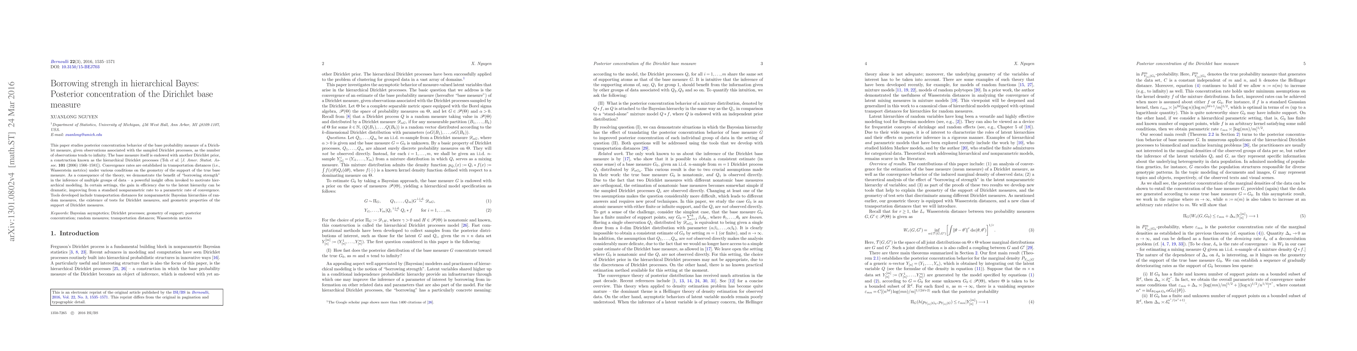 This paper investigates the posterior concentration of the base measure in hierarchical Dirichlet processes, establishing convergence rates in Wasserstein metrics and demonstrating the benefits of "borrowing strength" in inferring multiple data groups, often leading to significant efficiency improvements. Tools developed include novel transportation distances and geometric properties for these hierarchical models.