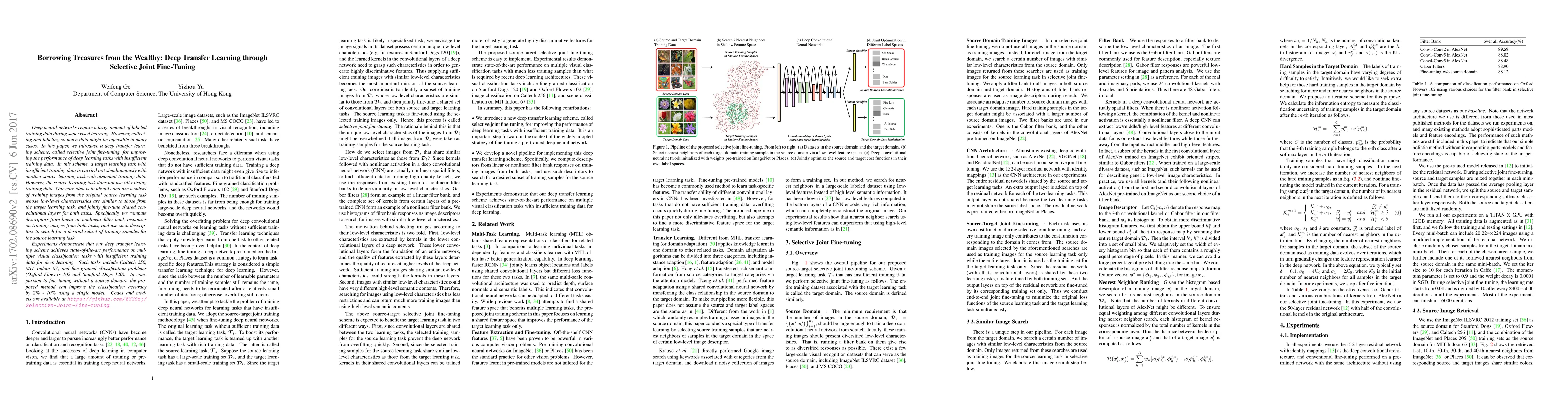 This paper proposes a selective joint fine-tuning scheme for deep learning tasks with insufficient training data by leveraging a source task with abundant data. The method identifies a subset of source images with similar low-level characteristics to target images, and jointly fine-tunes shared convolutional layers for both tasks, achieving state-of-the-art performance on visual classification tasks.