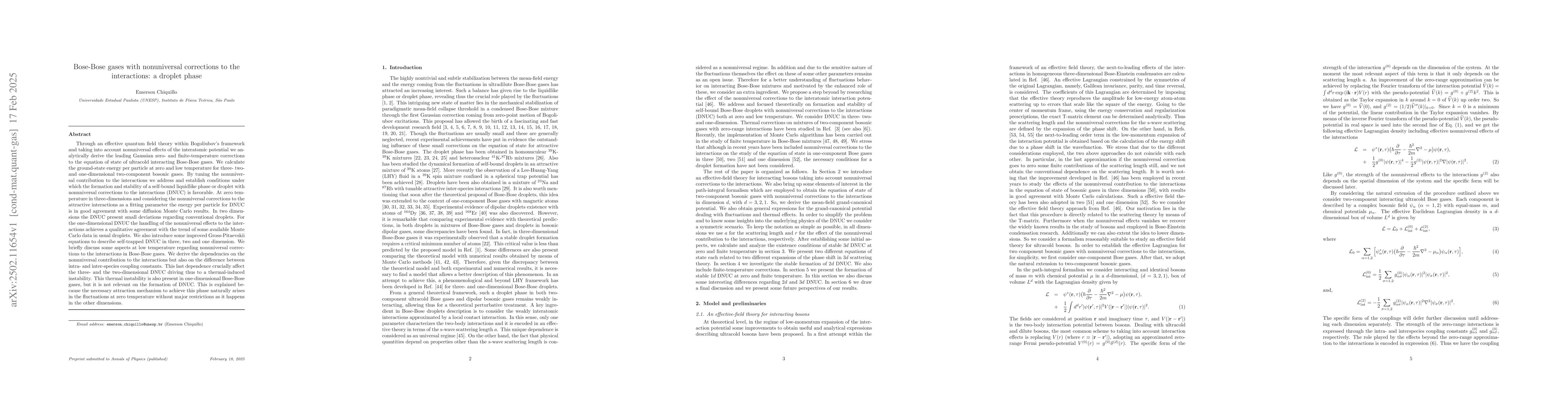 This work introduces a systematic analysis of nonuniversal corrections to interactions in Bose-Bose gases, extending previous research by incorporating Gaussian corrections and examining dimensional dependencies, thereby providing a more comprehensive understanding of droplet phases in these systems.