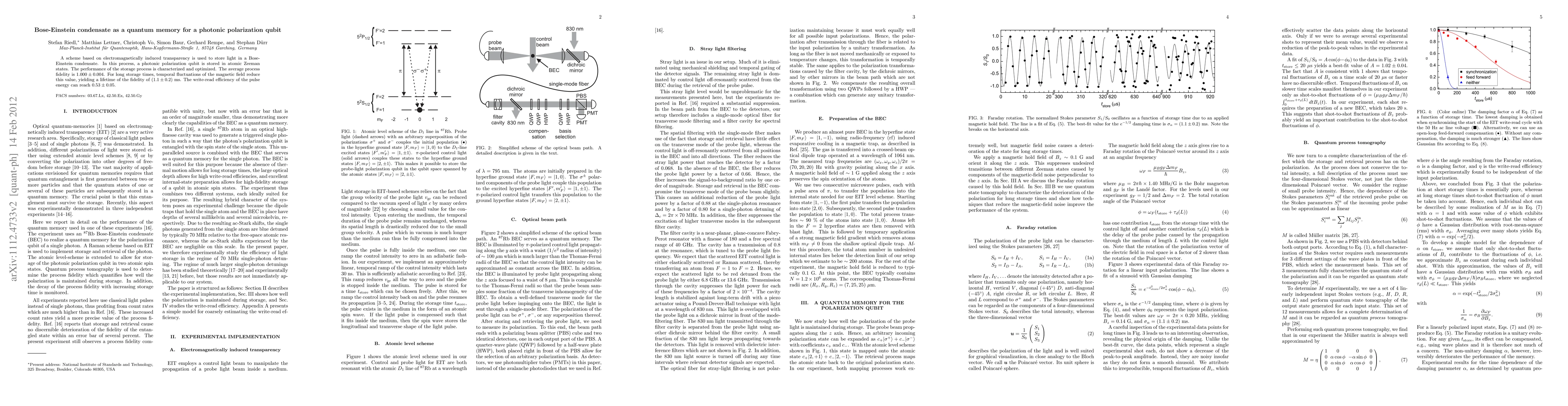 This paper proposes a method using electromagnetically induced transparency to store a photonic polarization qubit in a Bose-Einstein condensate, achieving an average process fidelity of 1.000 +/- 0.004, though magnetic field fluctuations reduce this over time to a lifetime of 1.1 +/- 0.2 ms. The write-read efficiency of the pulse energy is 0.53 +/- 0.05.