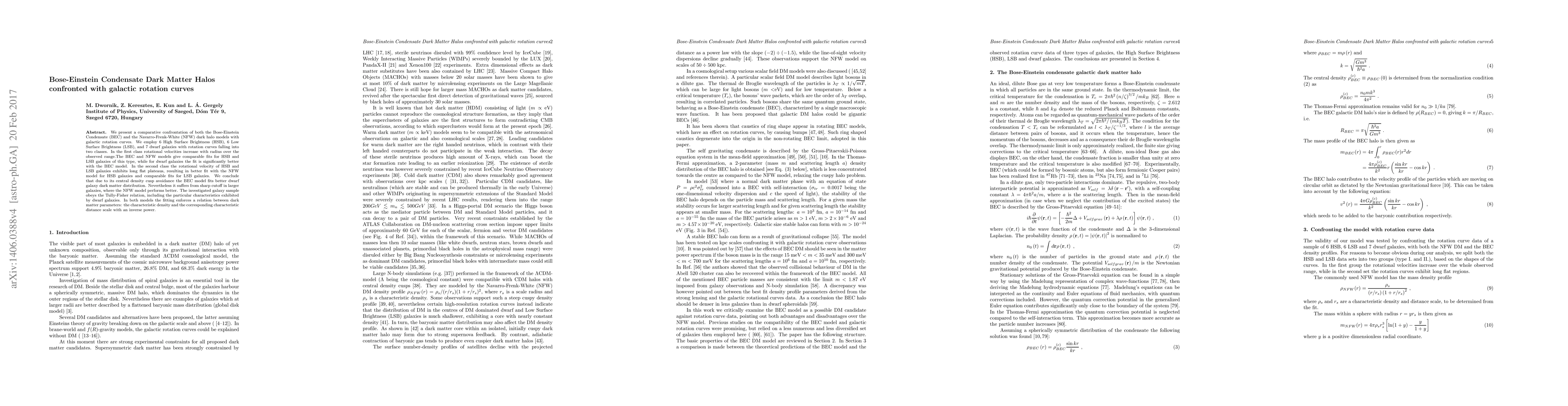 This paper compares Bose-Einstein Condensate (BEC) and Navarro-Frenk-White (NFW) dark matter halo models against galactic rotation curves, finding that the BEC model better fits dwarf galaxies due to its avoidance of central density cusps, while the NFW model fits larger galaxies better. Both models enforce a relation between dark matter parameters.