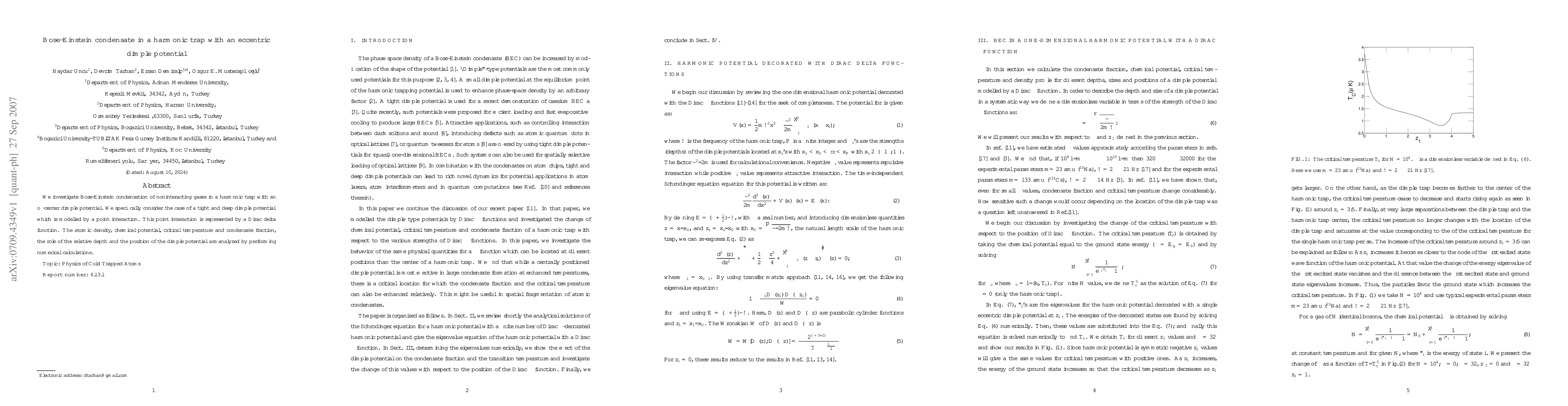 This study explores Bose-Einstein condensation in a harmonic trap with an eccentric dimple modeled by a Dirac delta function. Numerical calculations examine atomic density, chemical potential, critical temperature, and condensate fraction, focusing on the effects of dimple depth and position.